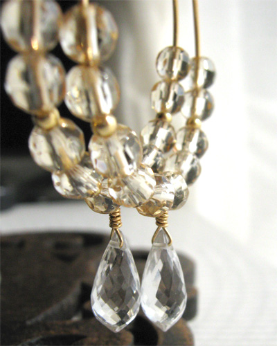 リング部分は、シャンパンカラーの水晶と、14kgf(ゴールドフィルド)のビーズで大人っぽさを演出。